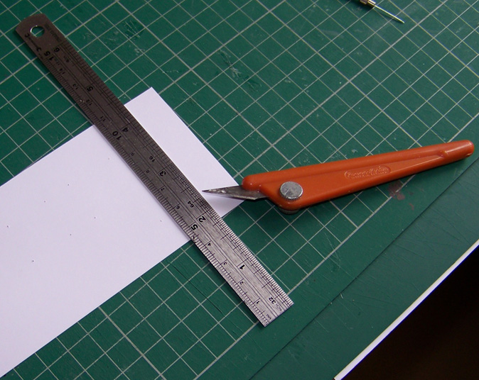 2. Turn the paper over and score (I prefer the blunt knife method) between the pin-holes.